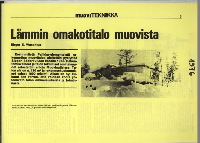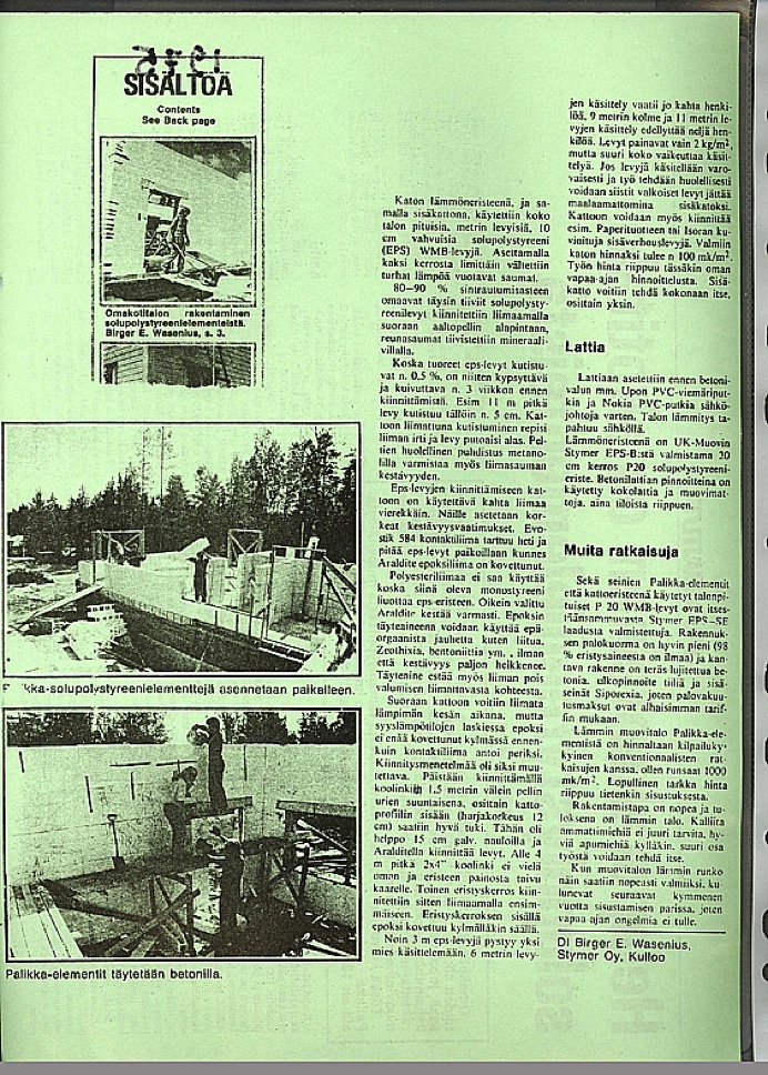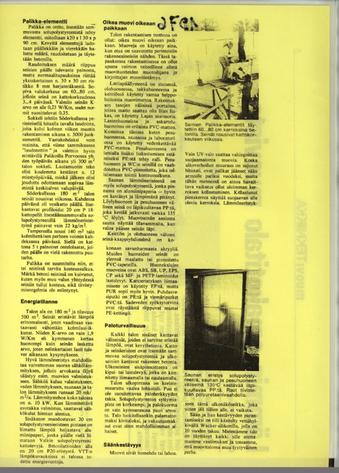 KUViSSA YLLÄ NÄKYY KIMPPARAKENTAMISENA JO 1983 RAKENTEILLA OLEVA YLI 20 PALIKKA MATALAENERGIATALON (NYKYÄÄN KUTSUTTAISIIN PASSIIVTALOIKSI) KANSAINVÄLISESTI PALKITTU SÄÄSTÖKYLÄ