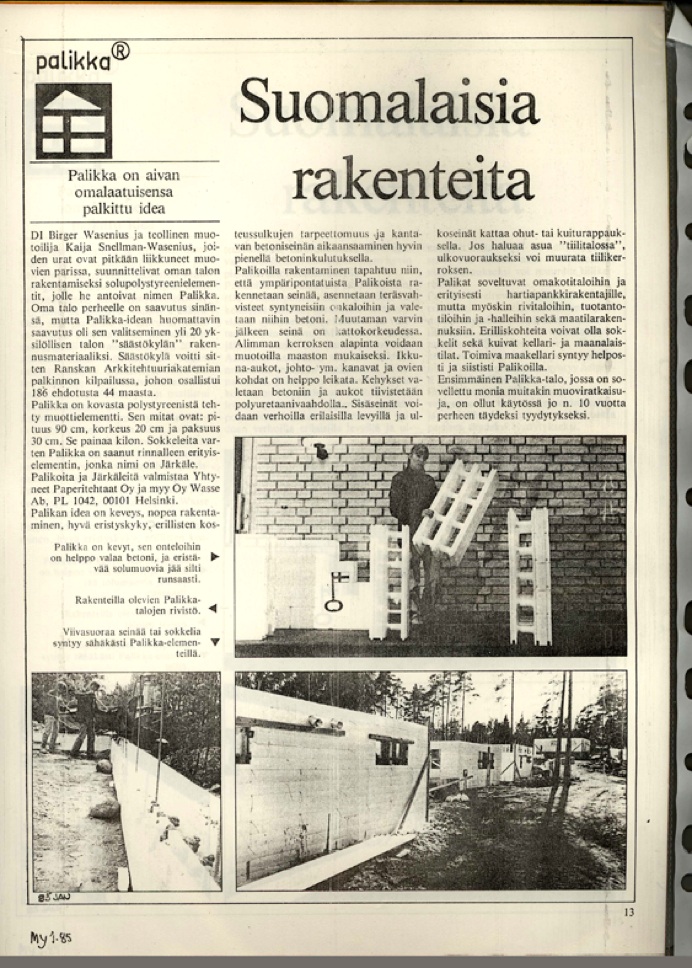 Alkuperäinen suomalainen PALIKKA® ORIGINAL muottielementti valmistettiin Suomessa jo 1970- luvulla, energiansäästämisen ja paremman rakentamisen edelläkävijyys hoidettiin kotiin jo silloin.