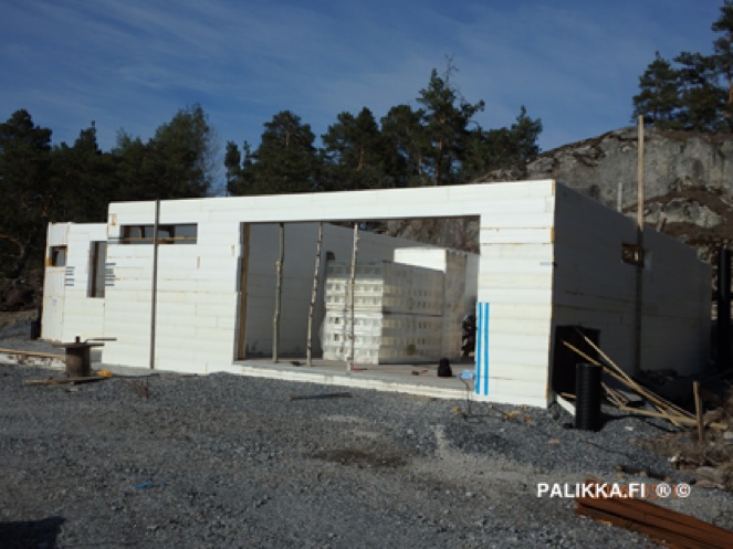 Kolmikerroksinen PALIKKA® passiivikivitalo viimeistelyvaiheessa